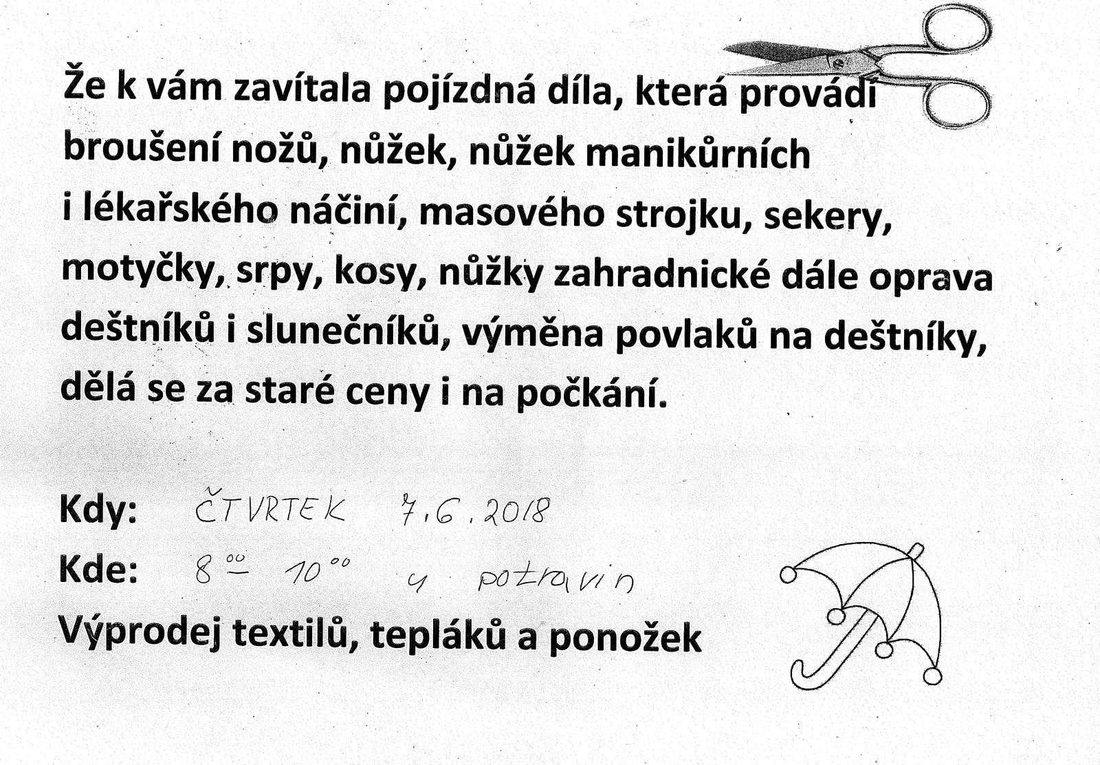 Úvod > O obci > Aktuality > Pojízdná dílna - broušení nožů, nůžek, seker, opravy deštníků...
