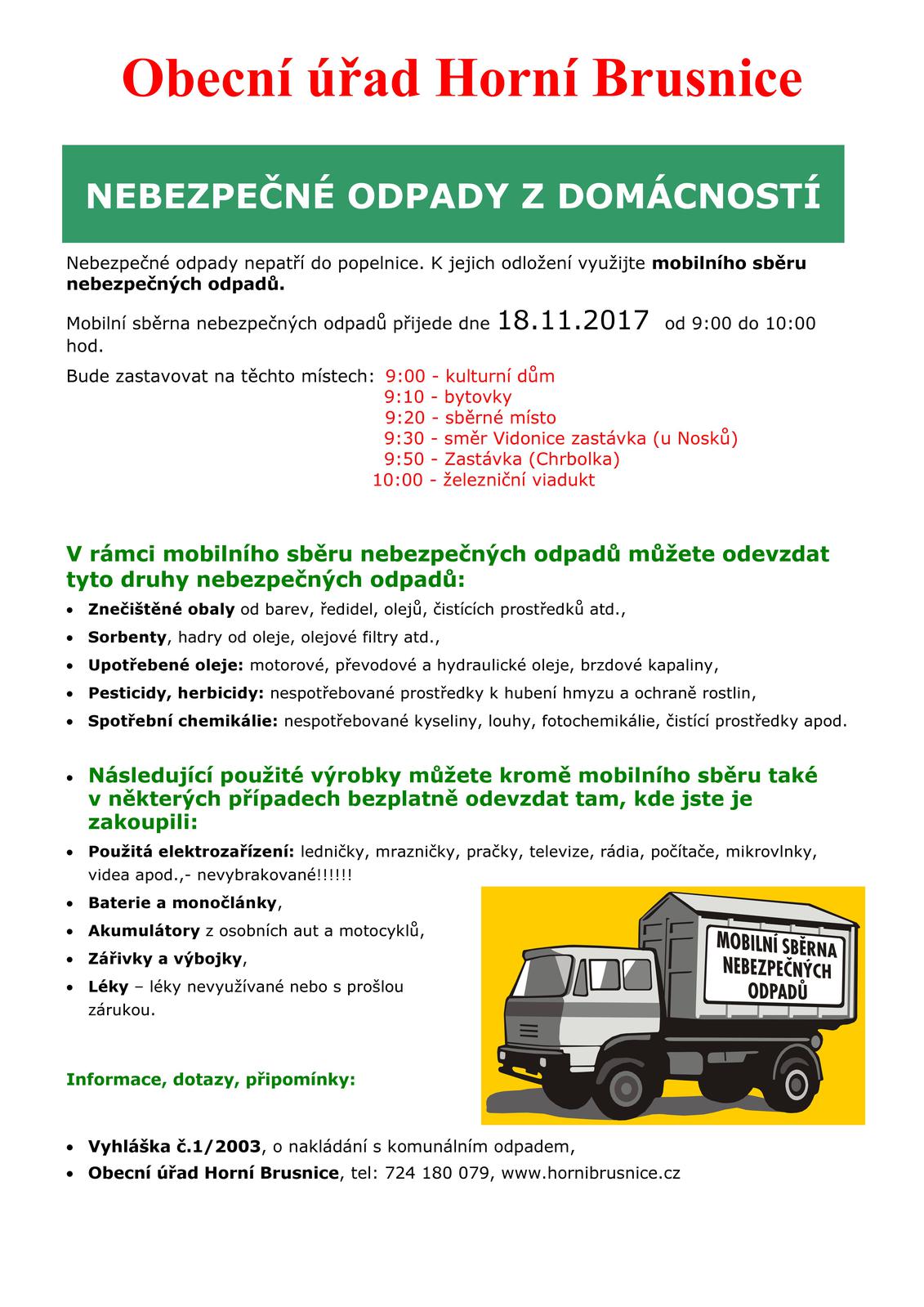 Úvod > O obci > Aktuality > Svoz nebezpečného odpadu - 18.11.2017